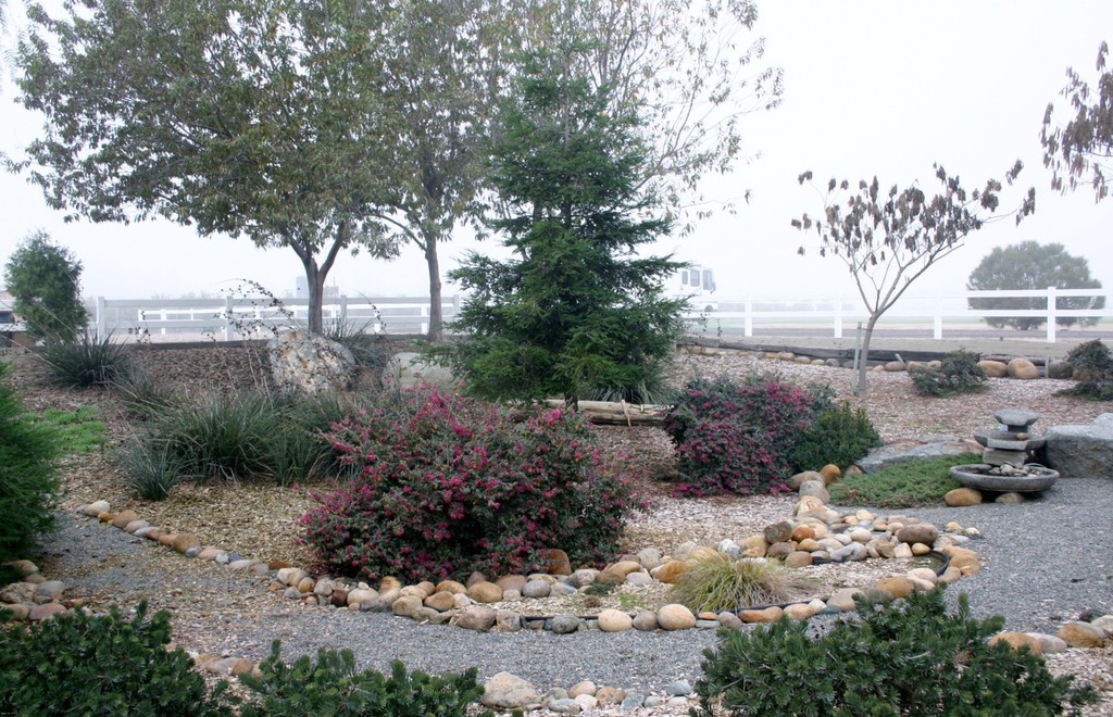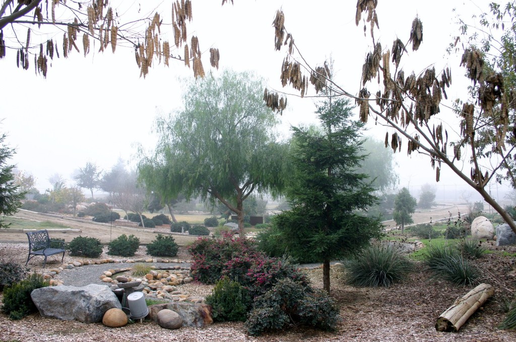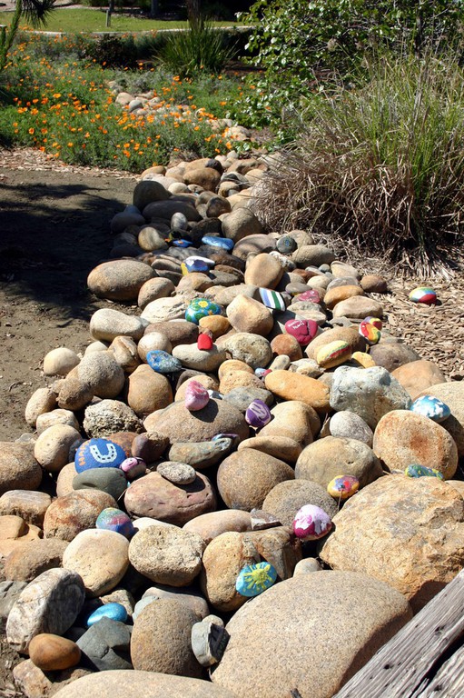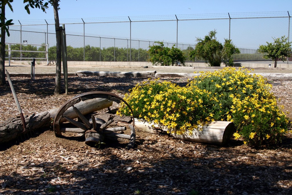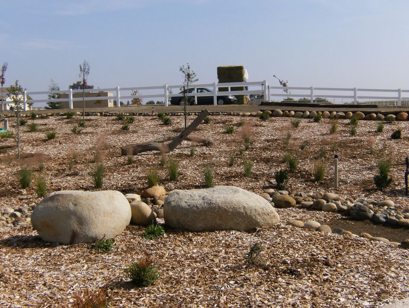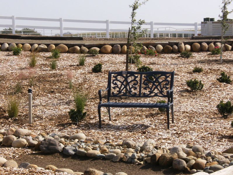 The Sensory Trail focus is on our five senses: vision, hearing, taste, touch and smell. It is visually stimulating by using different shapes, bright colors and interesting objects. The auditory system will be stimulated by the different textures for the horses to walk over. Some of these include a wooden bridge, pea gravel, sand and fall leaves. Song birds, crickets and the like are all welcome. Taste buds will be stimulated from the variety of fruit tress planted. Riders have the opportunity to pick fruit will on the back of a horse. Sense of touch is demonstrated by the vast number of flowers and plants. And finally smell from the variety of foliage.