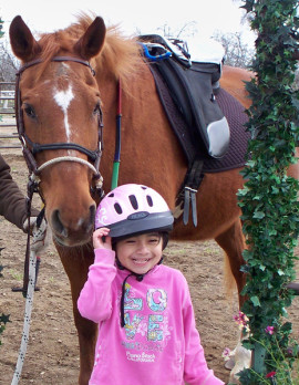 Children’s Hospital has tested Sienna for genetic and other disorders more than five times and her family is not any closer to getting answers. The closest guess is that she is in the high-functioning autism spectrum combined with a seizure disorder. Despite her limitations, Sienna continues to be a positive, friendly, happy, and lovable little girl that brings joy to everyone she meets. She is always ready with a hug for her instructors and volunteers and loves to wave “hello” to the horses as her family drives up the driveway.